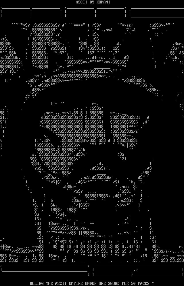 I suppose that means that my next post will need to be another instalment of our video game ANSI art theatre, to be followed before New Year, hopefully, with the thrilling conclusion -- part II -- of Gamey Stuff I Received Over These Holidays. PS, please don't forget, I am giving away Steam codes for games here. I haven't had any takers